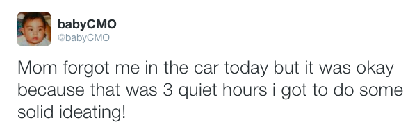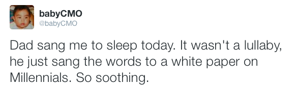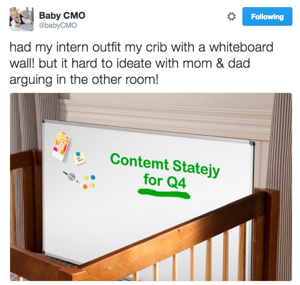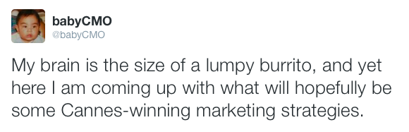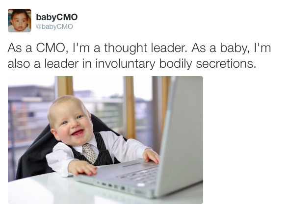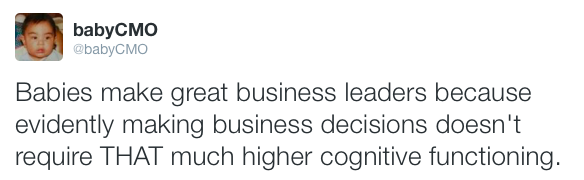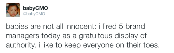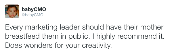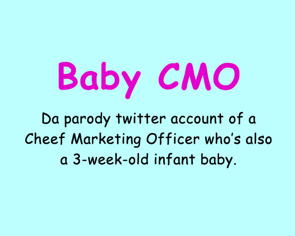 Baby CMO is the Twitter feed of a chief marketing officer who’s also a 3-week-old infant.
