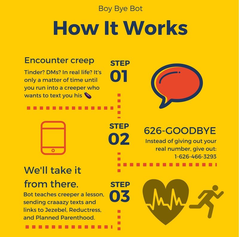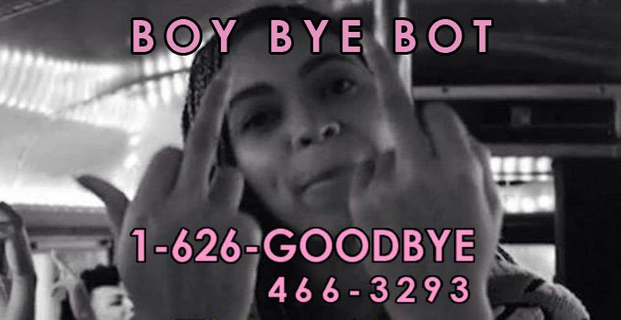 Boy Bye Bot is a fake phone number you can give to creepy dudes or fuckboys.