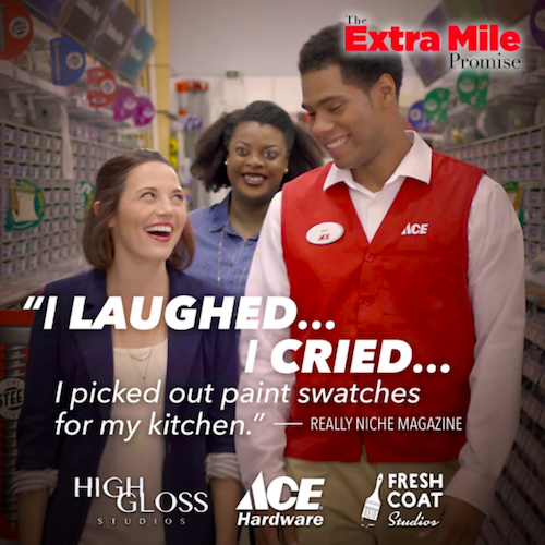 Ace Hardware stands behind their “Extra Mile Promise.” When I first heard that phrase, I thought, “Hey, that’d be a great title for a rom-com!” So we made a trailer for said (fake) rom-com and a bunch of social images to support it.