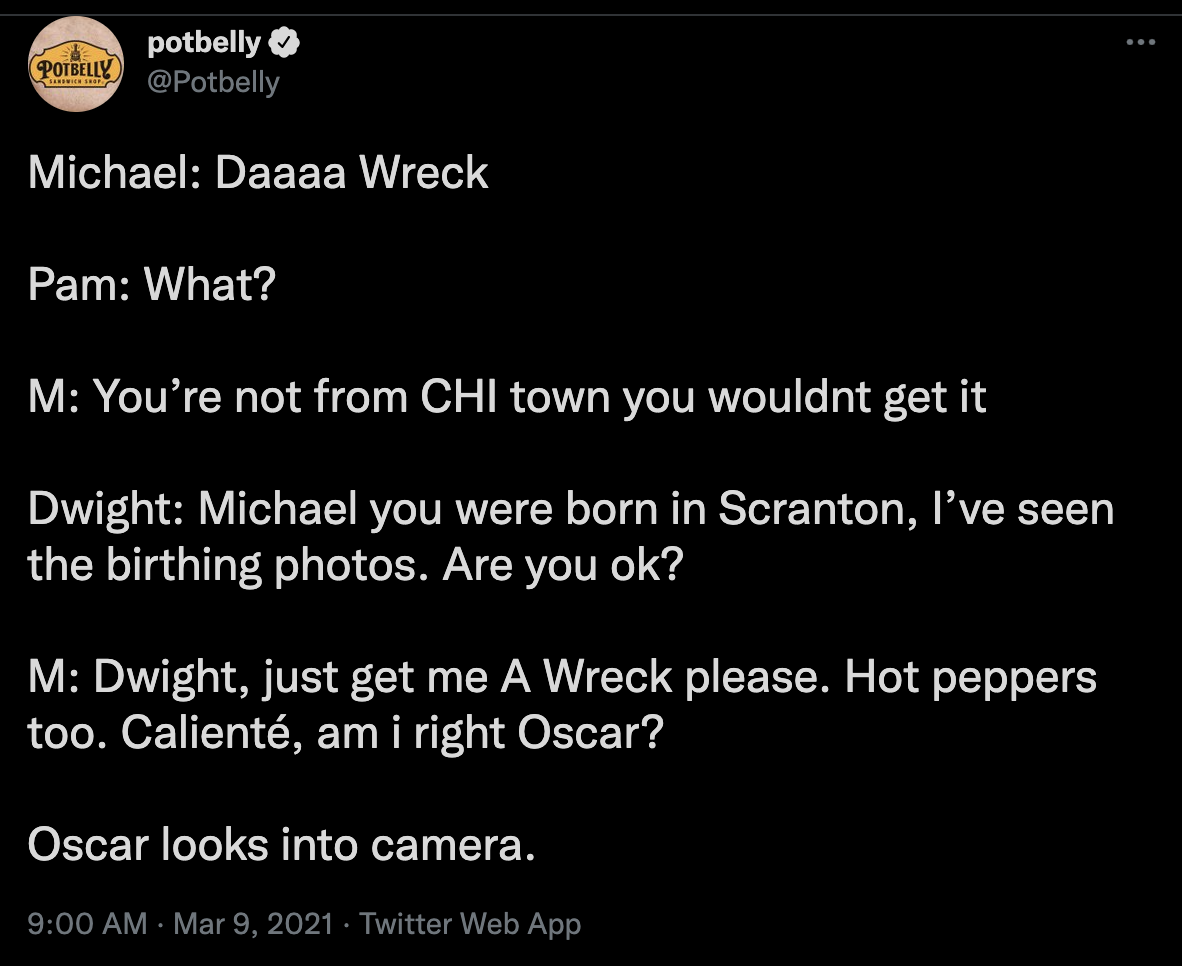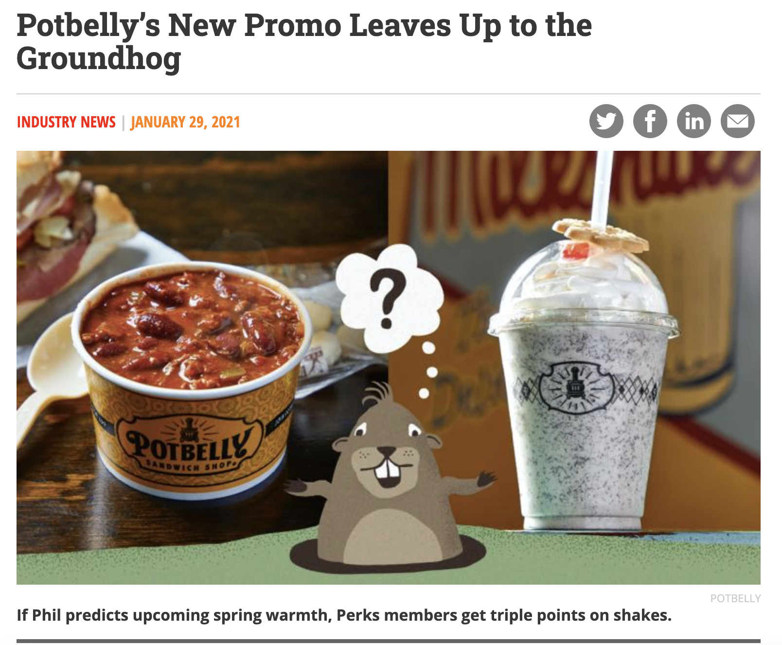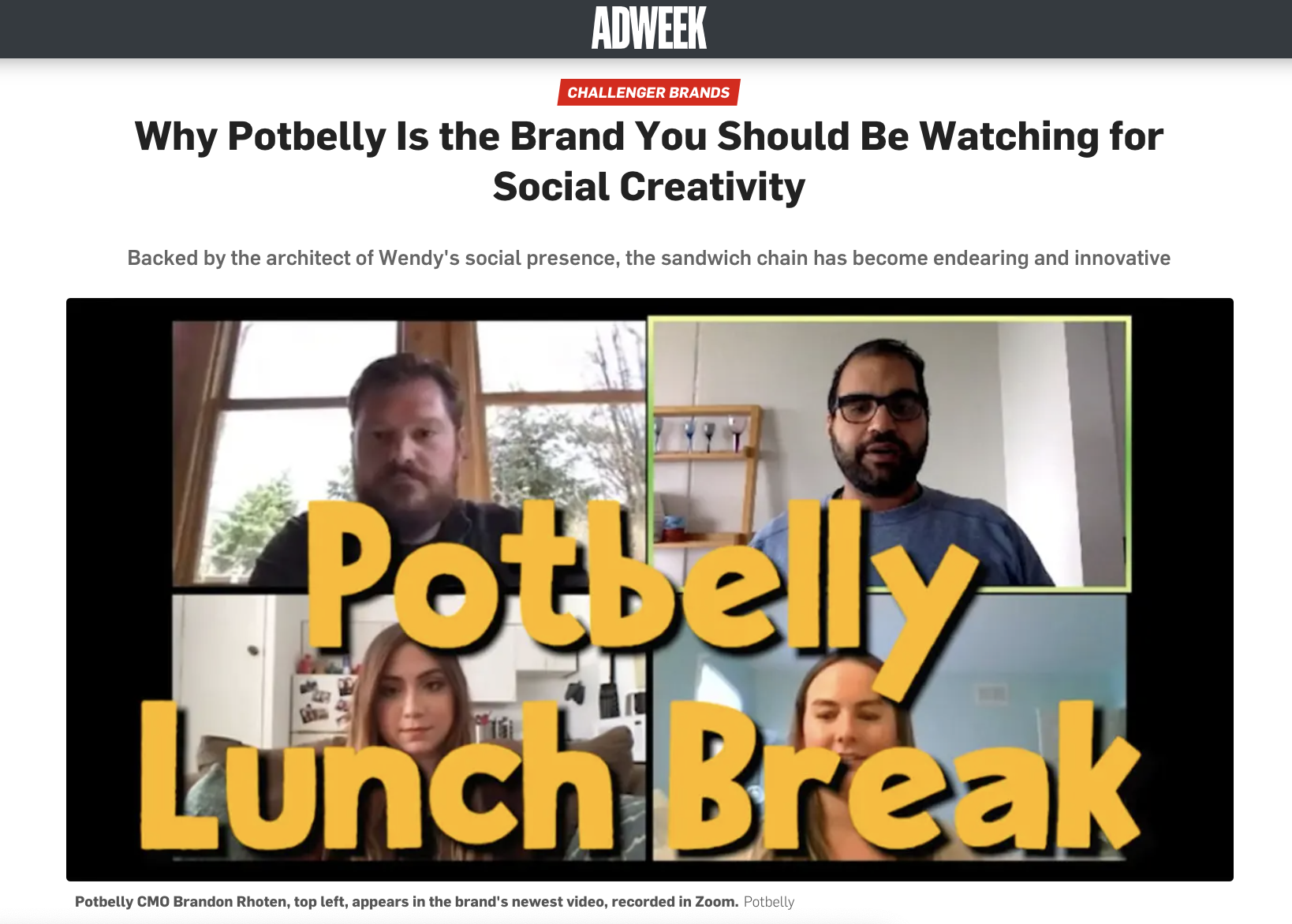 Thanks to our PR stunts, Adweek called us a "Brand To Watch" https://www.adweek.com/creativity/why-potbelly-is-the-brand-you-should-be-watching-for-social-creativity/